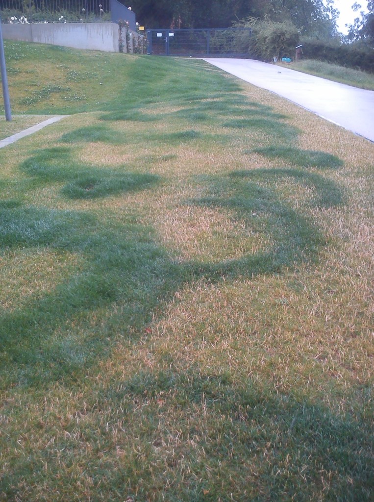 ja, man kann gestalterische Mittel bei der Pflege von Grünflächen anwenden und damit schöne Ornamente schaffen. Aber besser nicht mit Rasendünger in einer öffentlichen Grünanlage, die noch dazu zu einer Landesgartenschau gehört. Peinlich.