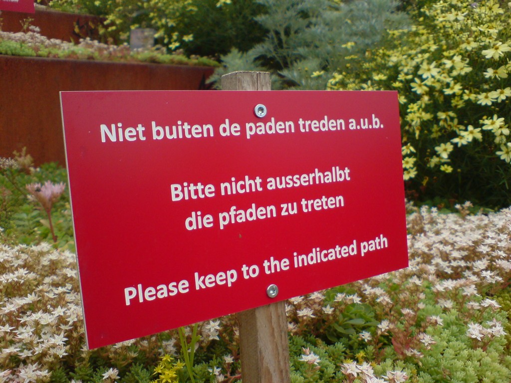 Na-tür-lich ist das kein aktuelles Foto. Mein Garten ist (ebenso wie dieser Vorgarten) etwas ganz besonderes, aber wir schwingen bevorzugt mit den Jahreszeiten. Außerdem wollen zwar alle Menschen von nah und fern der Vorgärtnerin echten Garten sehen, aber ich habe noch keine dreisprachigen Hinweisschilder aufstellen müssen.