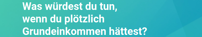 Der Verein MeinGrundeinkommen sammelt Spenden und verlost sie ungefähr alle zwei bis vier Wochen. Jeweils 12.000 Euro „am Stück“ gehen an eine Person und wird in zwölf Etappen ausgezahlt, jeden Monat 1.000€. Dafür muss man nichts haben oder sein, denn es handelt sich um ein bedingungsloses Grundeinkommen.