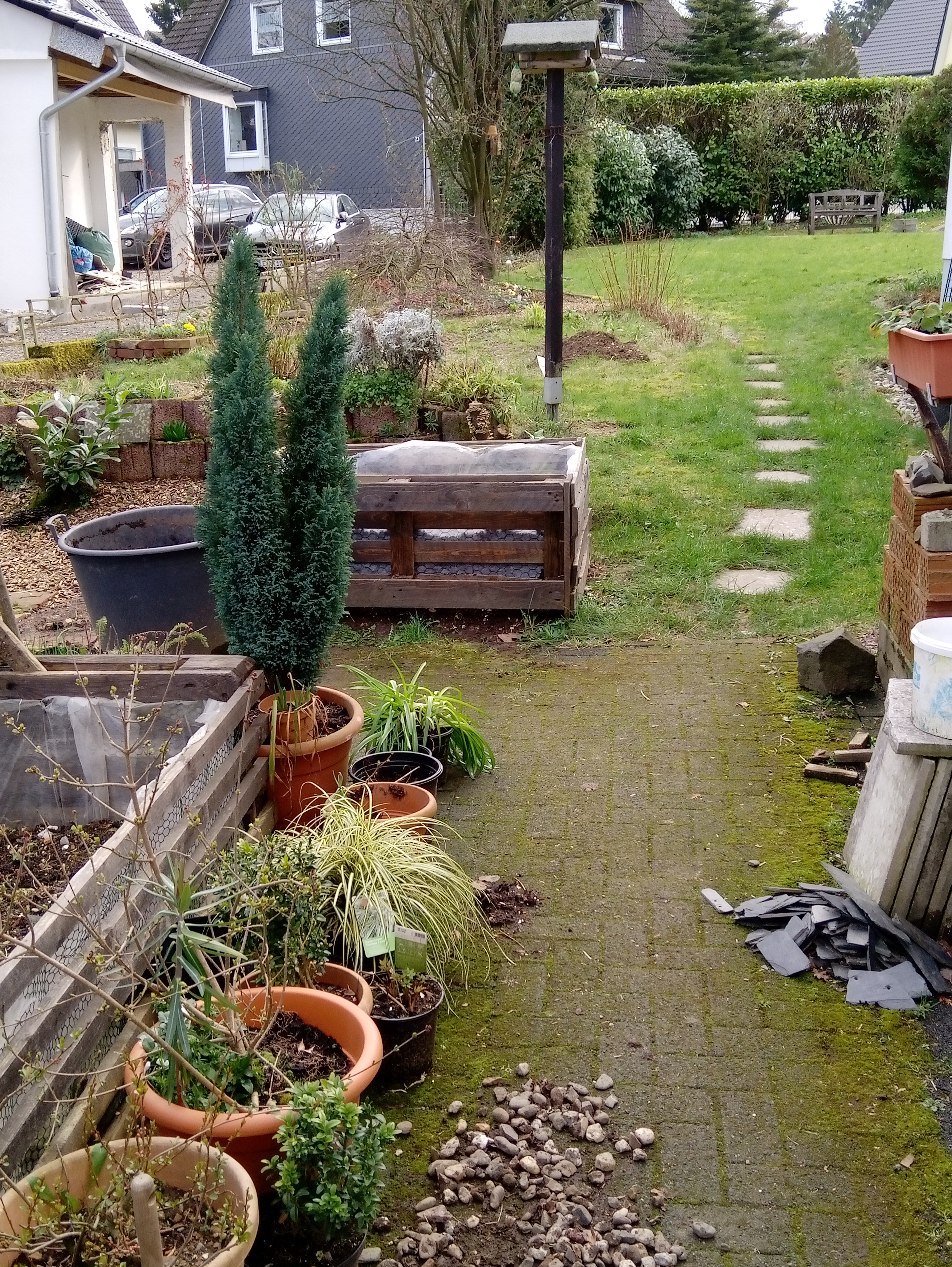 Im Folgenden siehst du ein paar der Veränderungen, die seit den ersten Fotos aus Februar 2017 über mein Grundstückchen gekommen sind. (Ab dem 16.3. galt der Corona-Einschluss, weshalb ich dazu noch die Einteilung in vorCorona und jetzt vorgenommen habe, der Zwischenschritt lohnt sich.)