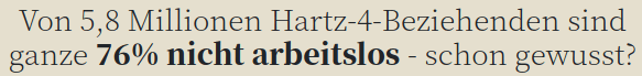 Hartzfacts hat eine Sammlung mit Fakten und Zahlen über Hartz4 und ein Quiz mit acht Fragen (und je drei Antwortmöglichkeiten) zusammengestellt. Ich, die ich ja eigentlich vom Fach sein sollte, hatte nicht alle Fragen richtig. Also Mut zur Lücke.