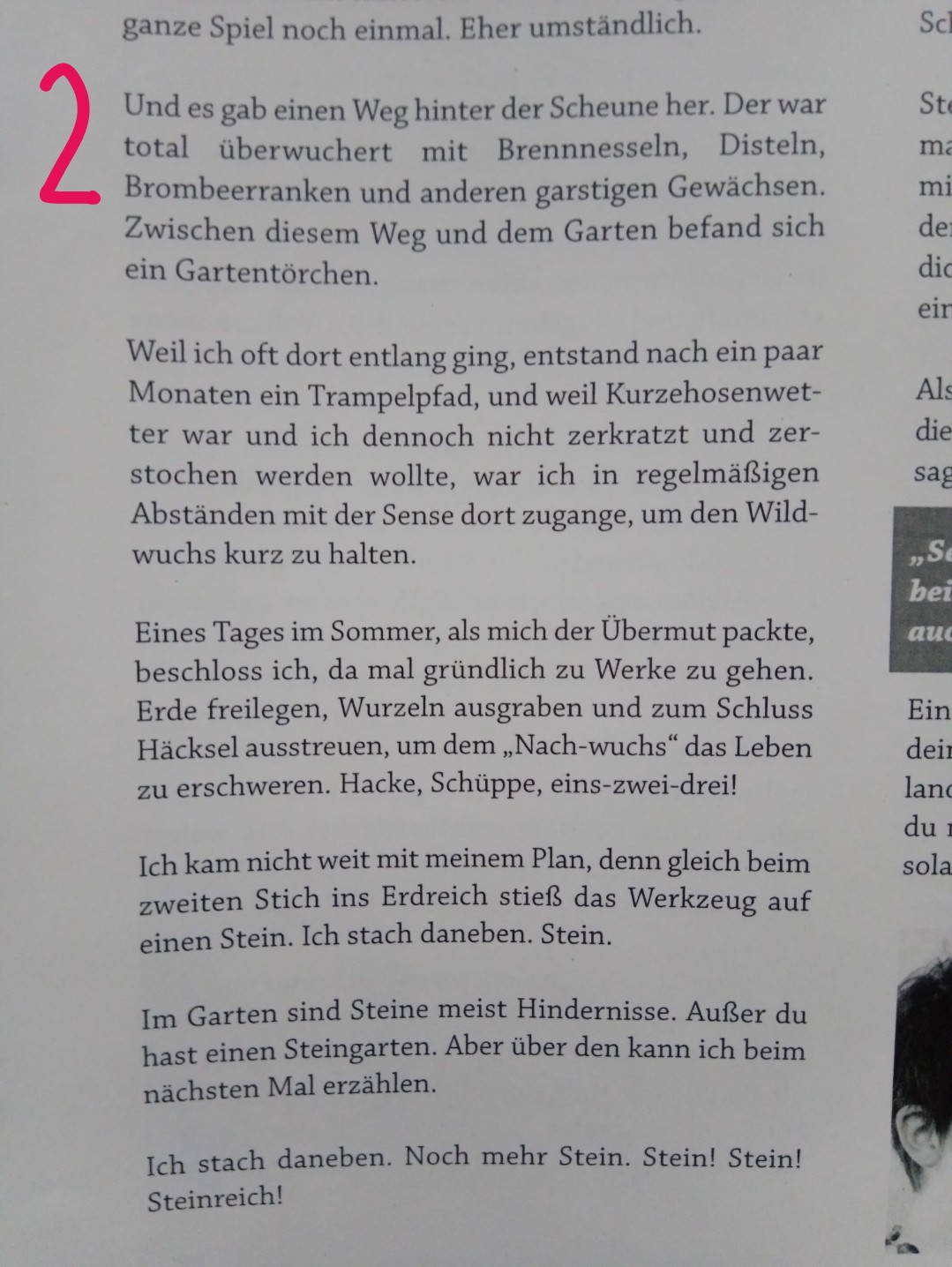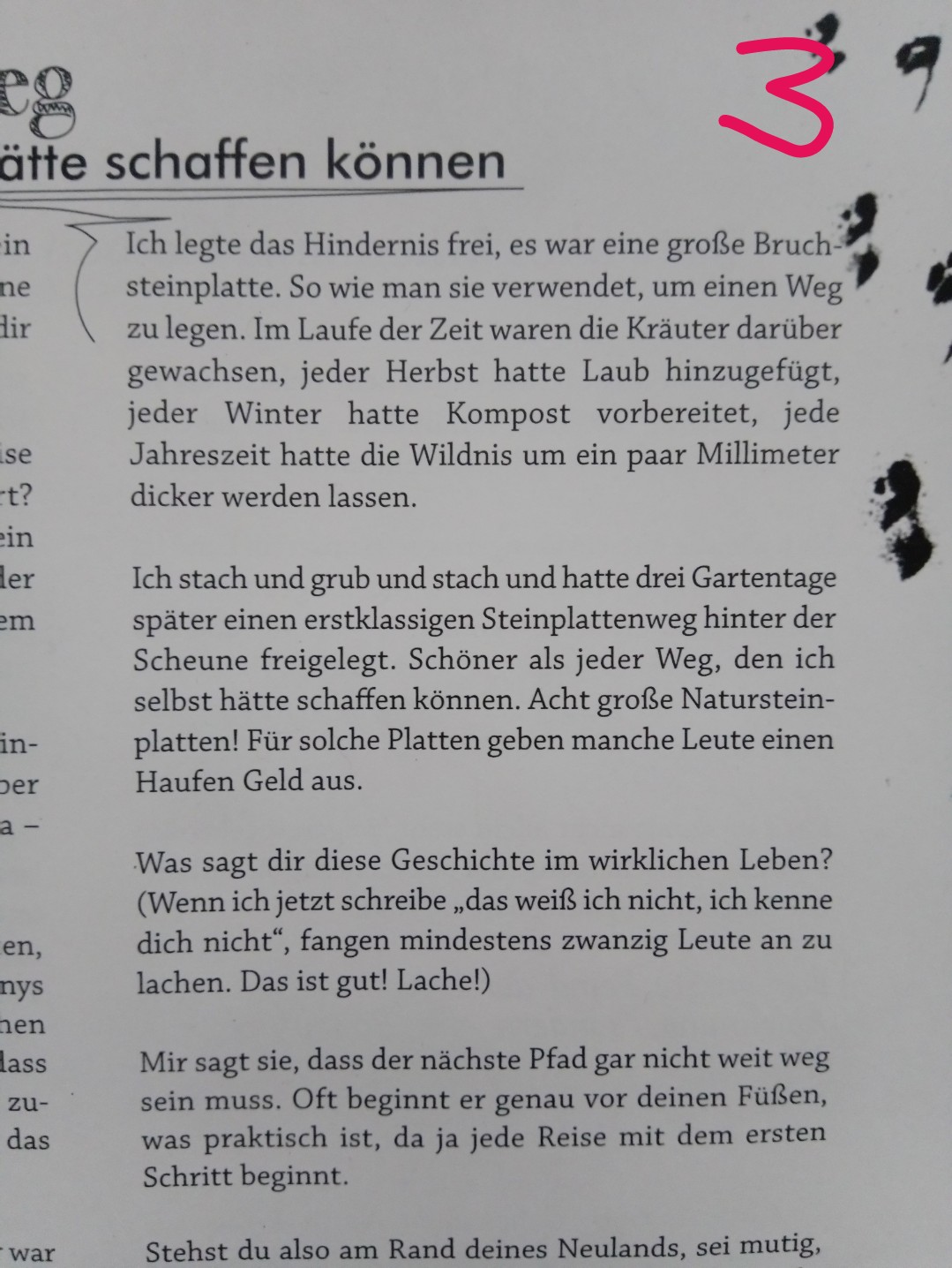 Ich finde lauter Satzbausteine, die ich heute noch genauso nutze. zB „eines Tages, als mich der Übermut packte“ und „aber darüber kann ich beim nächsten Mal erzählen“ – das verwende ich sogar so häufig, dass mir das händi die Wörter schon in Reihenfolge vorschlägt!