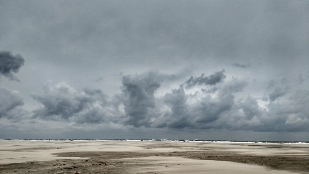 Aber es war absolut fantastisches Wetter. Guck dir diese Wolken an!! Und all die Nuancen von Grau in Himmel, Wolken, Meer und Strand!