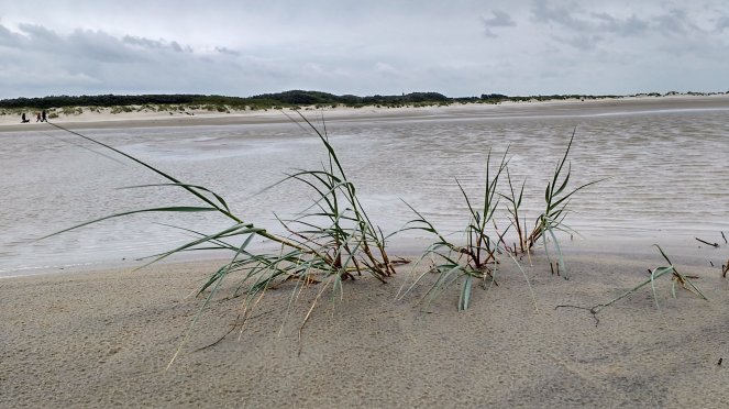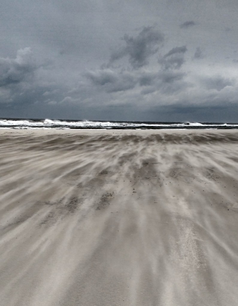 Natürlich flog nicht nur der Sand, sondern immer wieder auch der Regen, und stichelte seine Muster in den Sand. Die Elemente der Insel: Wasser, Sand und Wind.