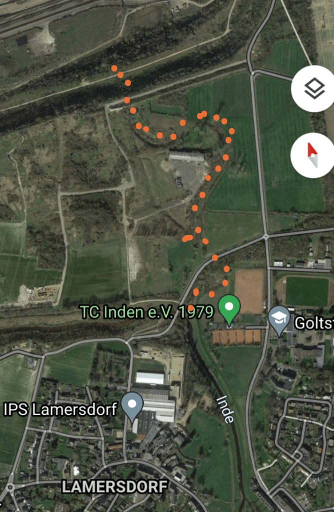 Im folgenden siehst du die Inde aus südlicher Richtung auf Lamersdorf zukommen →