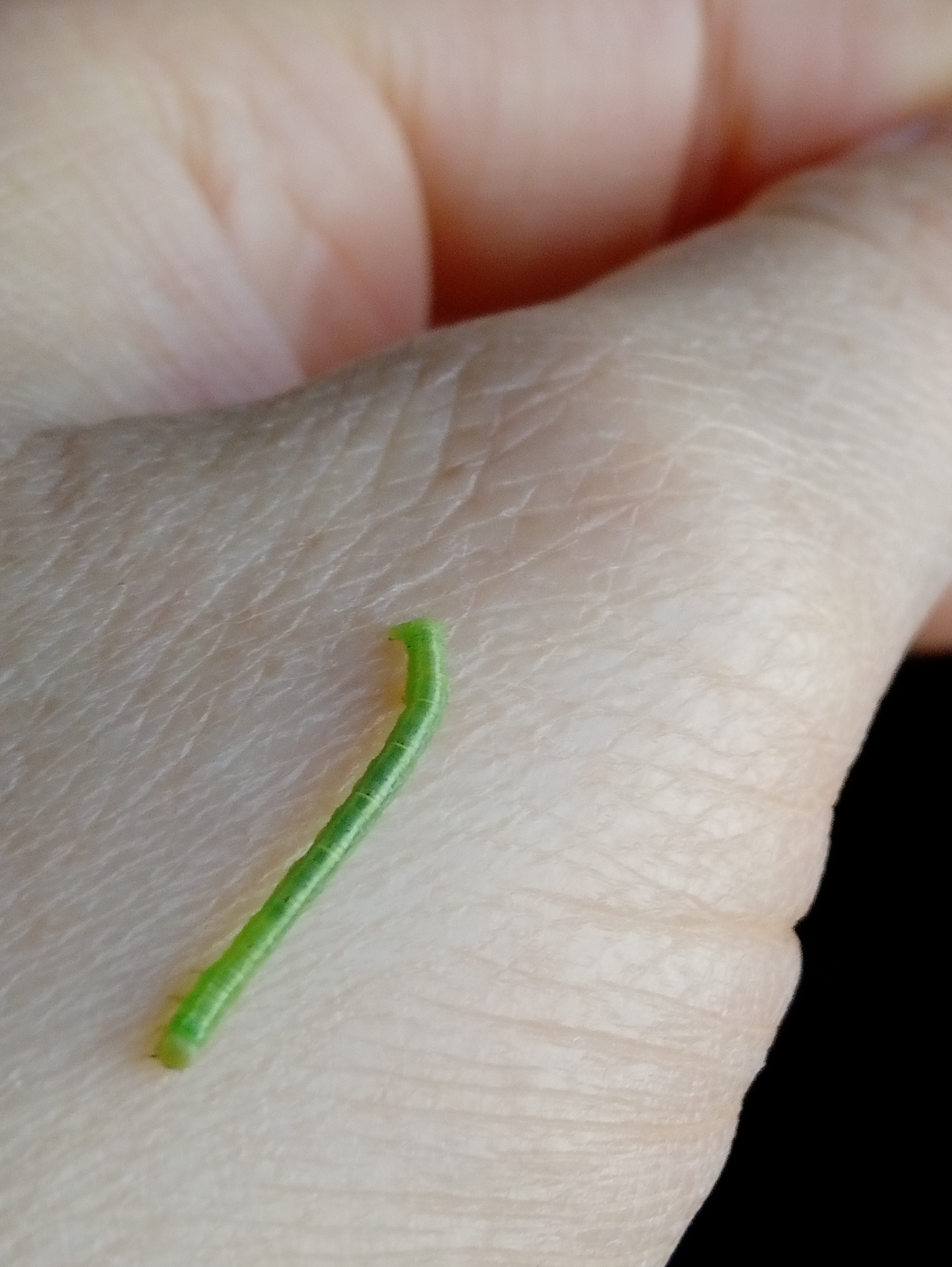 Ich war mal mit beim therapeutischen Reiten und schon wieder auf der Rückfahrt fand ich dieses grüne Tierchen auf meiner grünen Jacke.