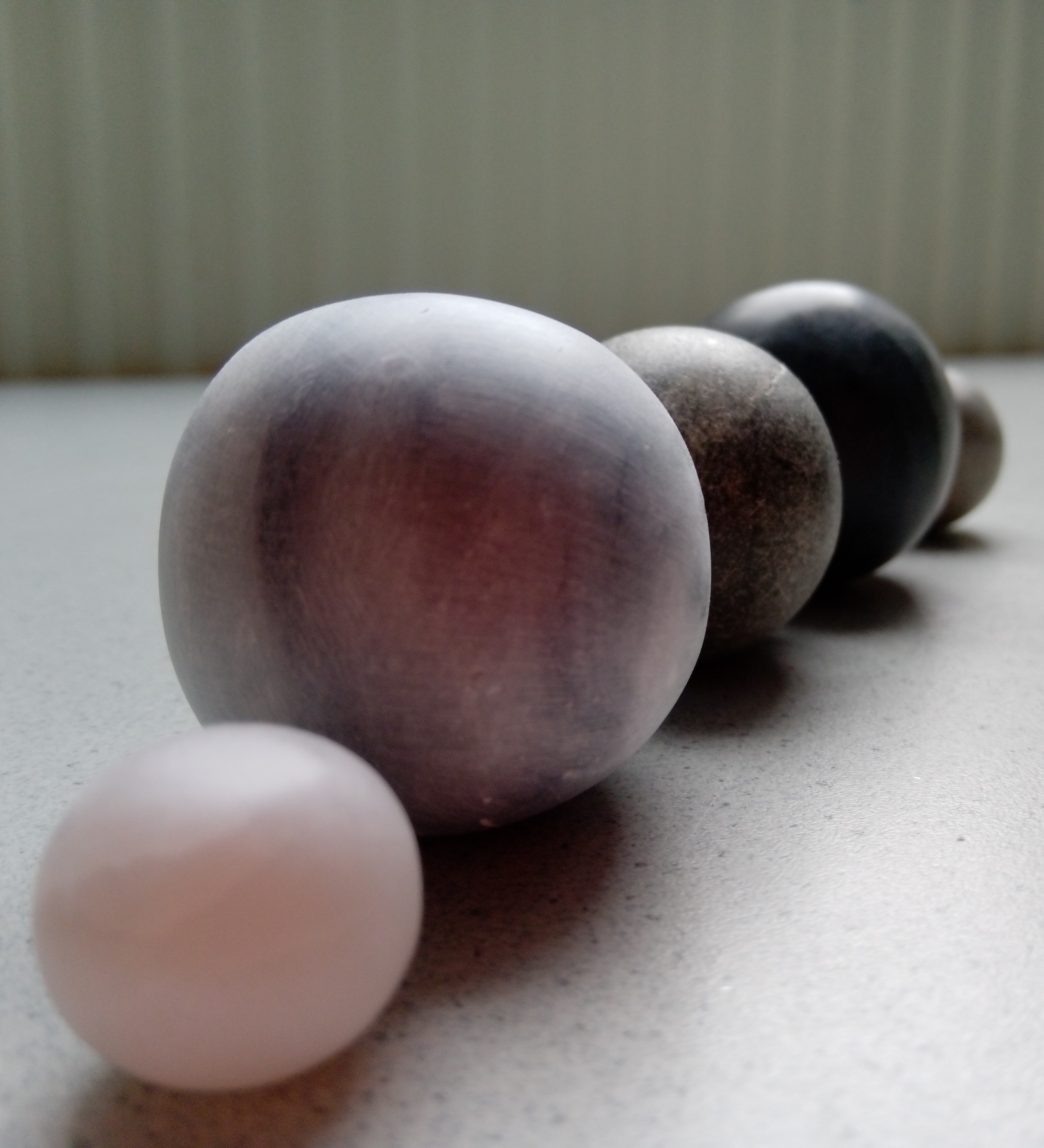 - Kugellager: ich hatte mal Lust, Kugeln aus Speckstein zu machen. Die größte hat so ungefähr 3-3,5cm im Durchmesser, die kleinste 1,3cm