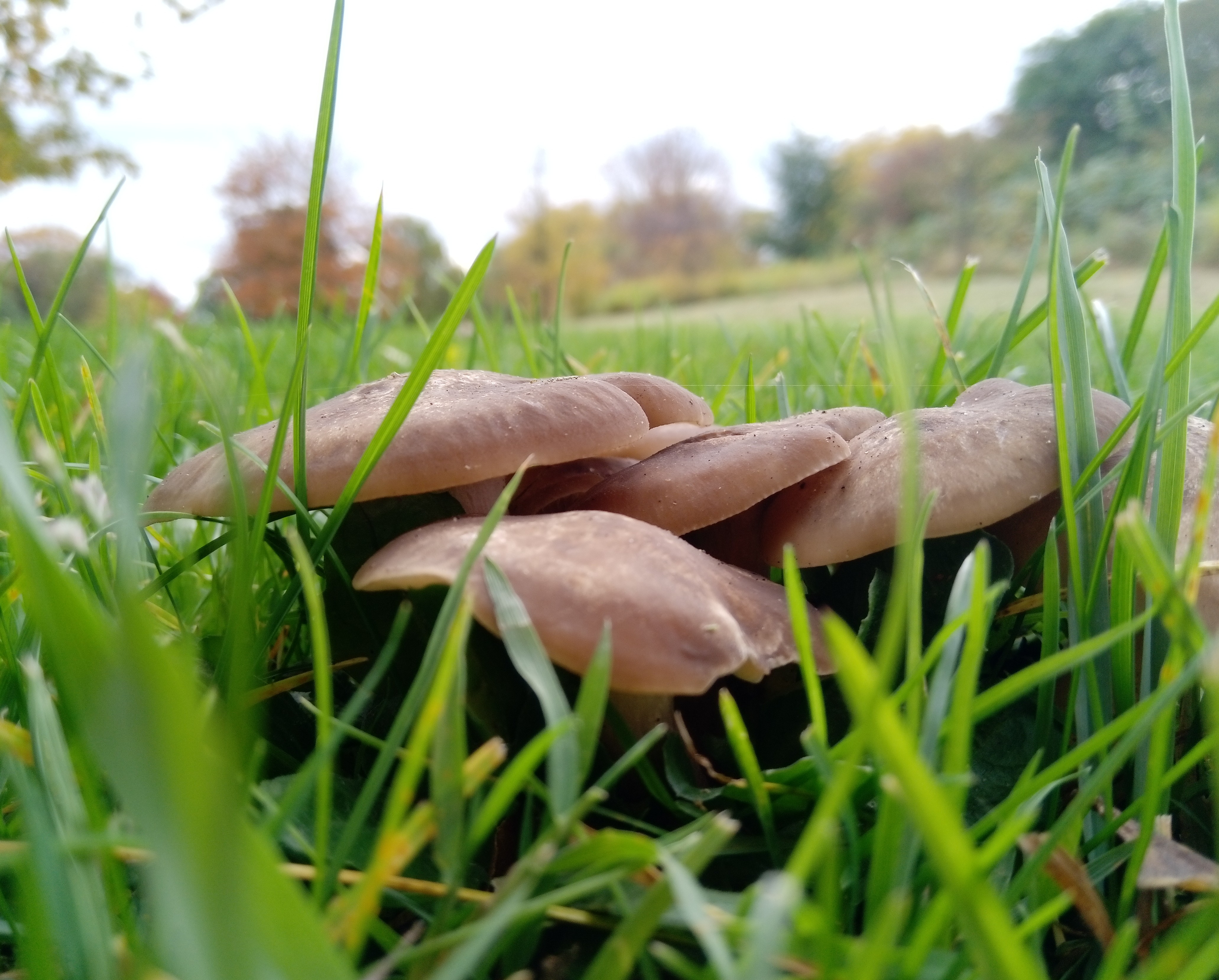 - von wegen, „unter einem großen Baum wachsen nur Pilze“!* Hier sind die Pilze größer als die Bäume. Perspektivisch betrachtet.