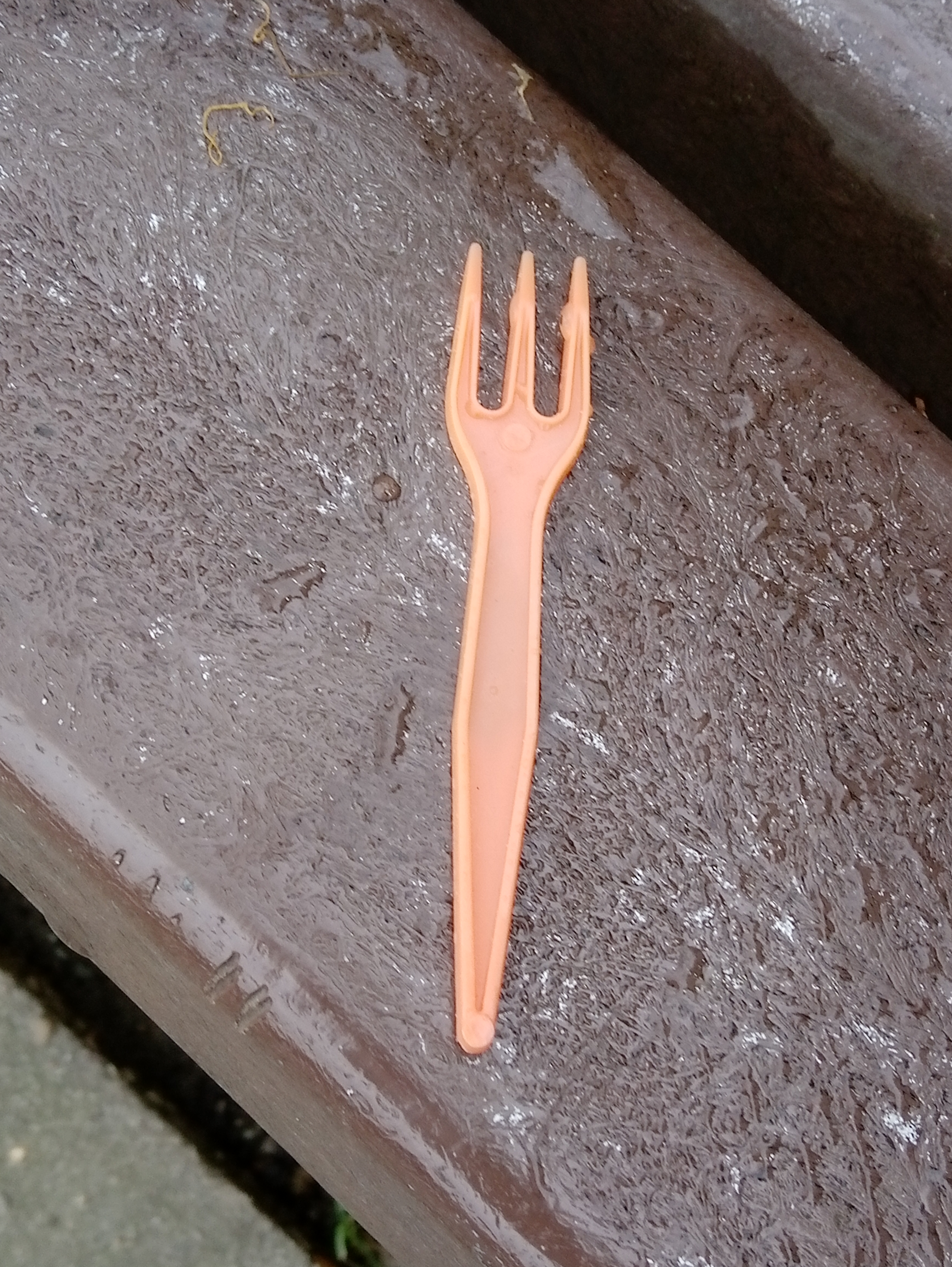 - ein Pommesgäbelchen, das einer auf der Parkbank liegen gelassen hatte.