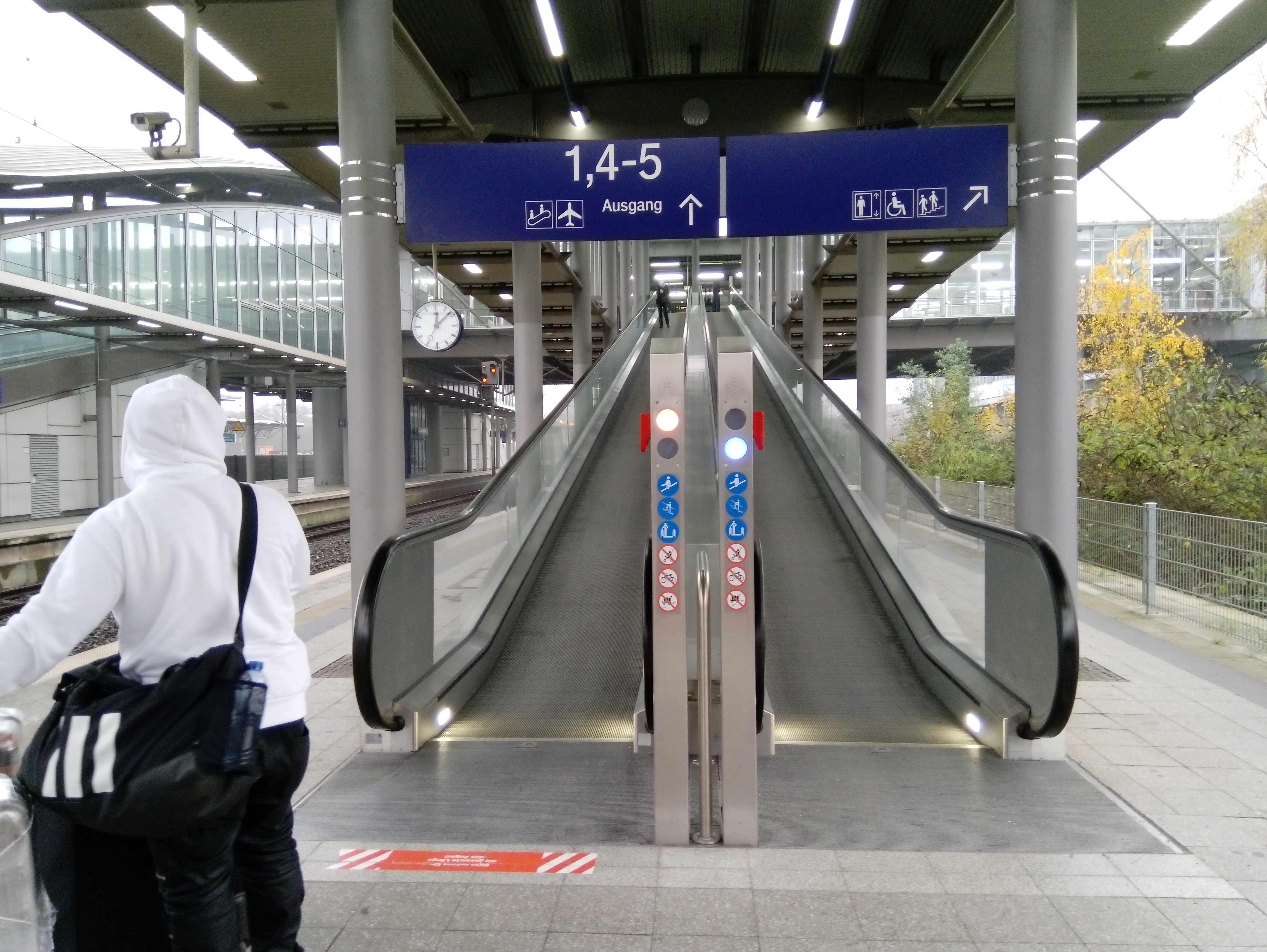 - die Roll“treppen“ am Flughafen Düsseldorf von der gleichnamigen S-Bahn-Haltestelle aus. War ich auf dem Weg nach Hause oder fuhr ich zur Reha? Beides ist mögli