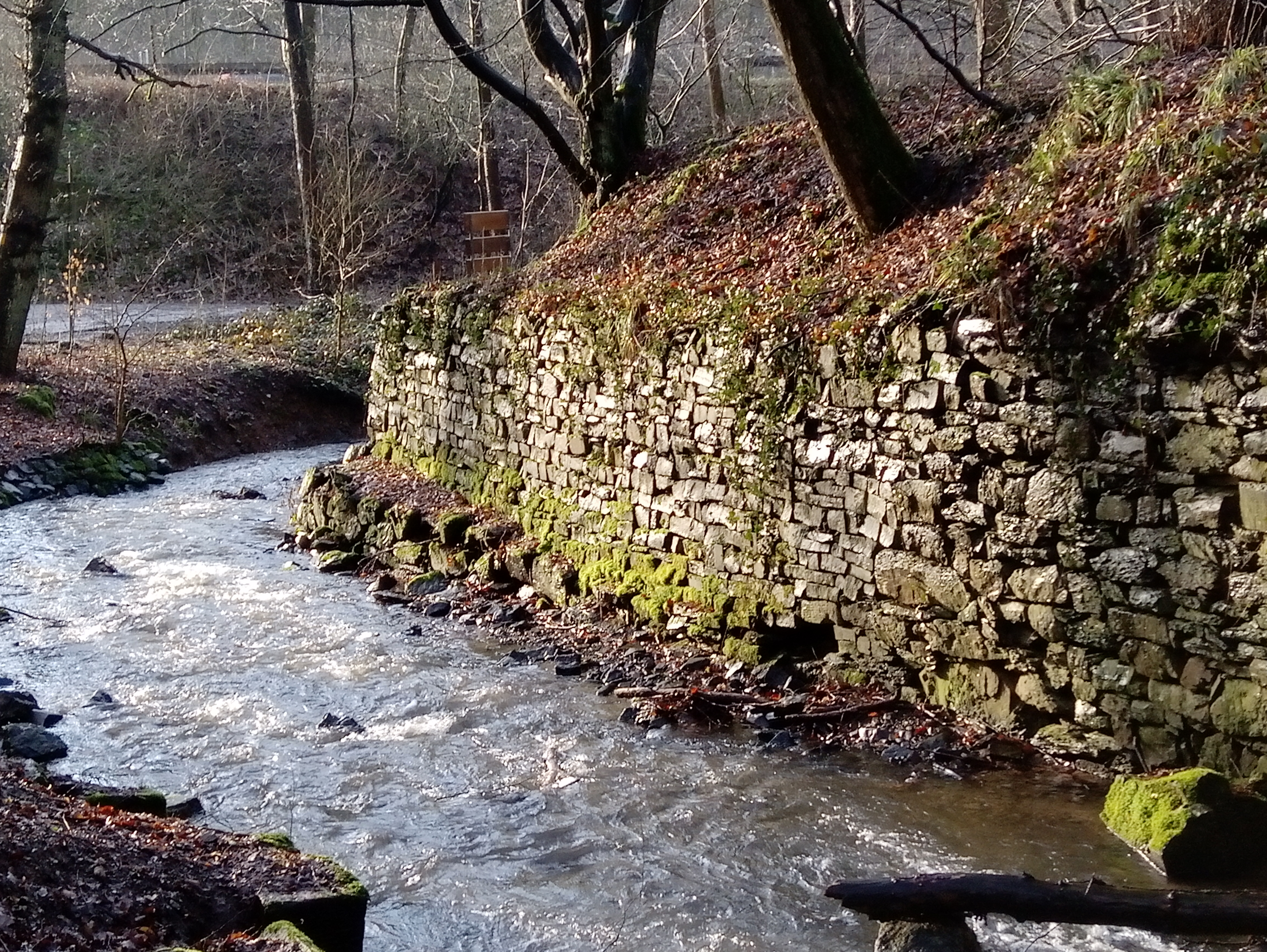 Rund ums Bergische Städtedreieck findest du in jedem Tal solche Kulturlandschaften, seit Jahrhunderten in industrieller Nutzung. Jeder Wasserlauf wurde angezapft, aufgestaut, umgeleitet, um Maschinen anzutreiben. Mittlerweile hat sich die Natur viele dieser Flächen zurück geholt – stellenweise sieht man wesentlich weniger als hier und muss den Boden lesen können, um sie zu finden. Andere sind immer weiter instand gehalten worden und inzwischen moderne Produktionsstätten.