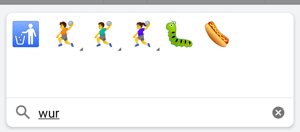 alles fing damit an, dass ich irgendwas mit Wurzeln, verwurzelt, … schreiben wollte und ein Bildchen dazu suchte. Die Suche endete unbefriedigend, die Messenger haben auch dieses Emoji nicht, aber sie brachte mich trotzdem weiter. Wurf-in-Eimer, Wurf-mit-Ball, Wurm, Wurstbrot – oh, fein, was gibts da denn noch? Nase, Nase, lange Nase. Aha, wir müssen auch auf englisch denken: Rednose Rudolph. Naschen, nass, Nasigoreng-Land (ich dachte, es sei Nassau, aber das ist es nicht) und Nashorn.