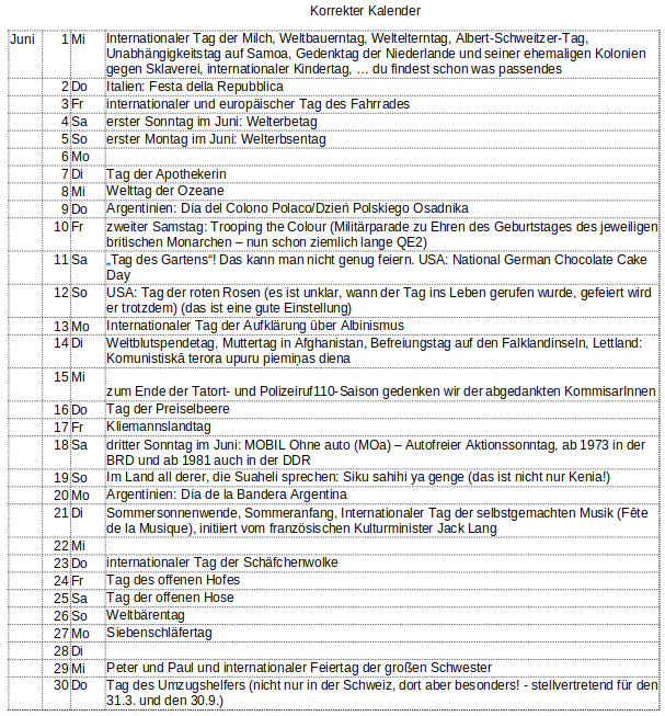 Meine Lieblingsfeiertage im Juni sind der 12., 15. und 18. UND der 5., na-tür-lich!