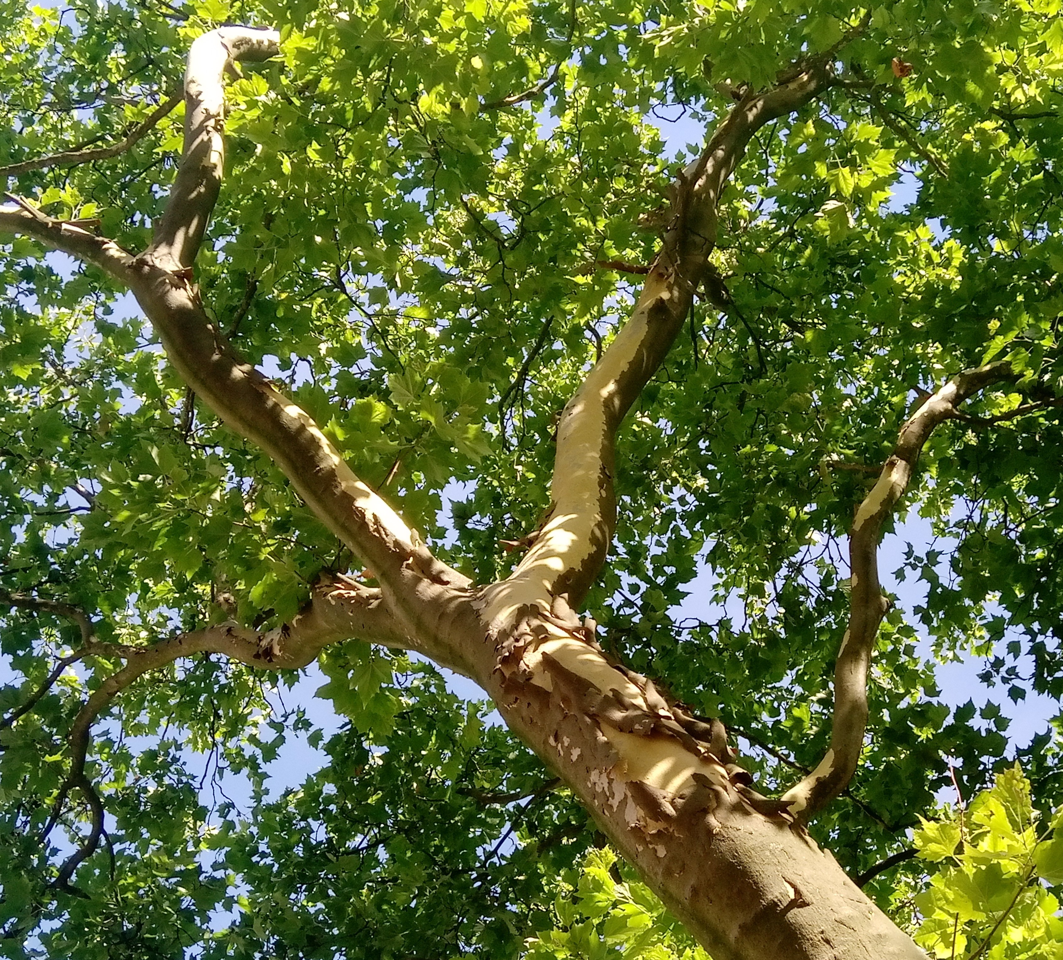 Einmal im Jahr „mausert“ sich die Platane und die alte Rinde platzt in großen Stücken ab.