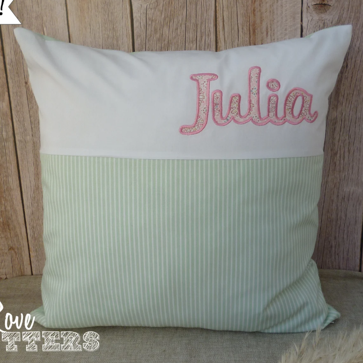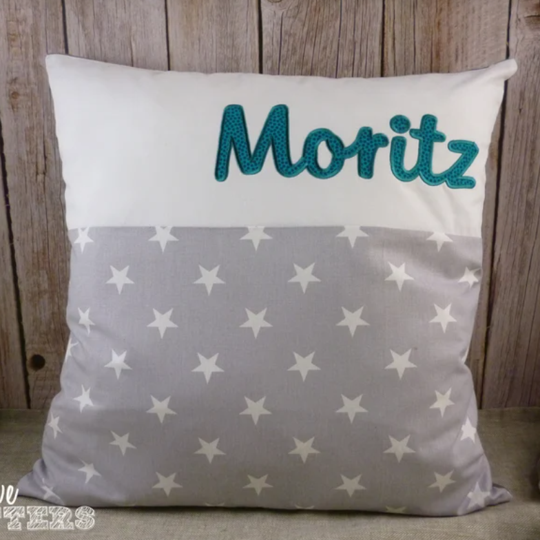 Ja, zum Beispiel bei meiner Freundin Judith. Ihre sind sehr schön und du kannst sogar deinen Namen drauf nähen lassen, damit dir fortan niemand mehr unwissend dein Kissen klaut … und du stattdessen wirklich 😚😘 bekommst, wenn du darum bittest. Und sonst Sterne, Herzen, Buchstaben, Zahlen oder andere schöne Applikationen in Wunschfarben.