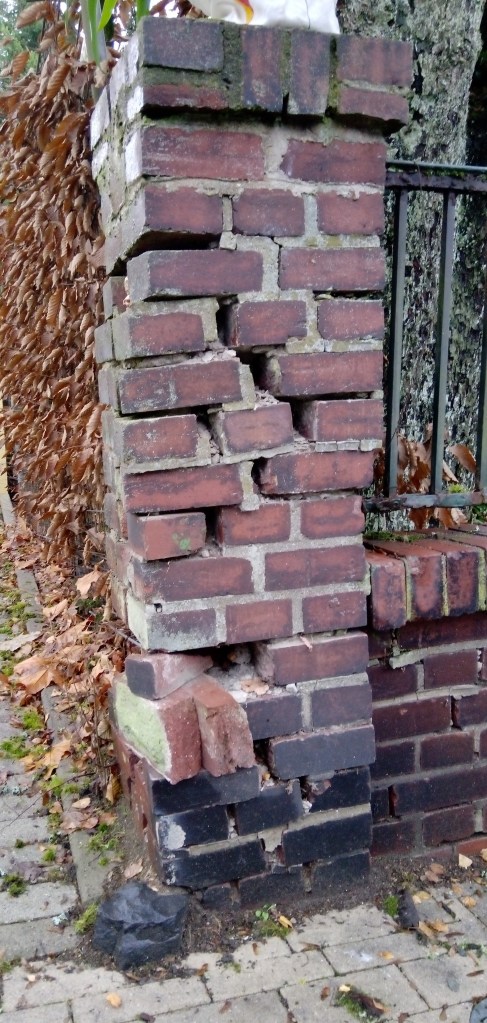 Getestet: unten bei den zwei hochkant stehenden Steinen, mitm Fuß. Hält.