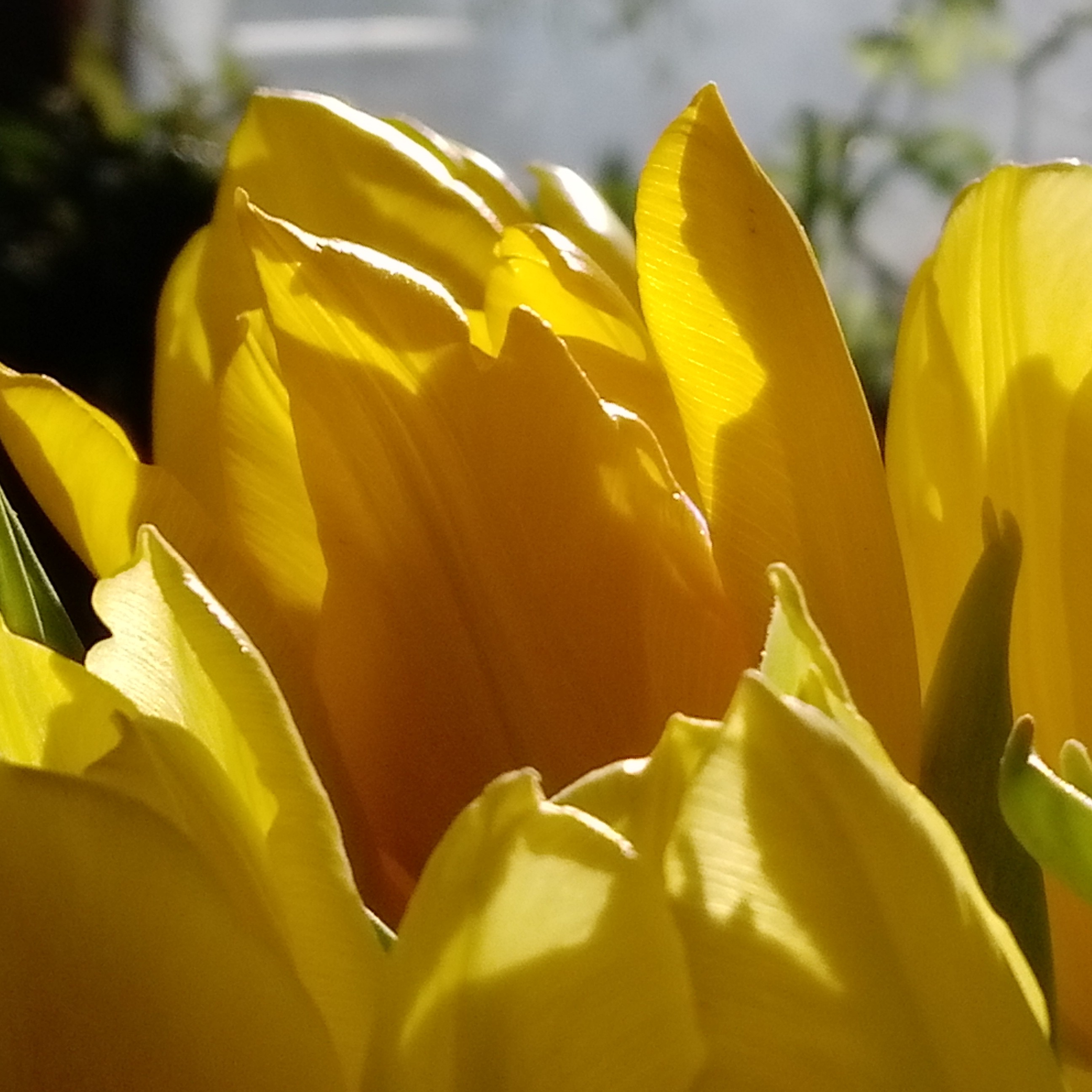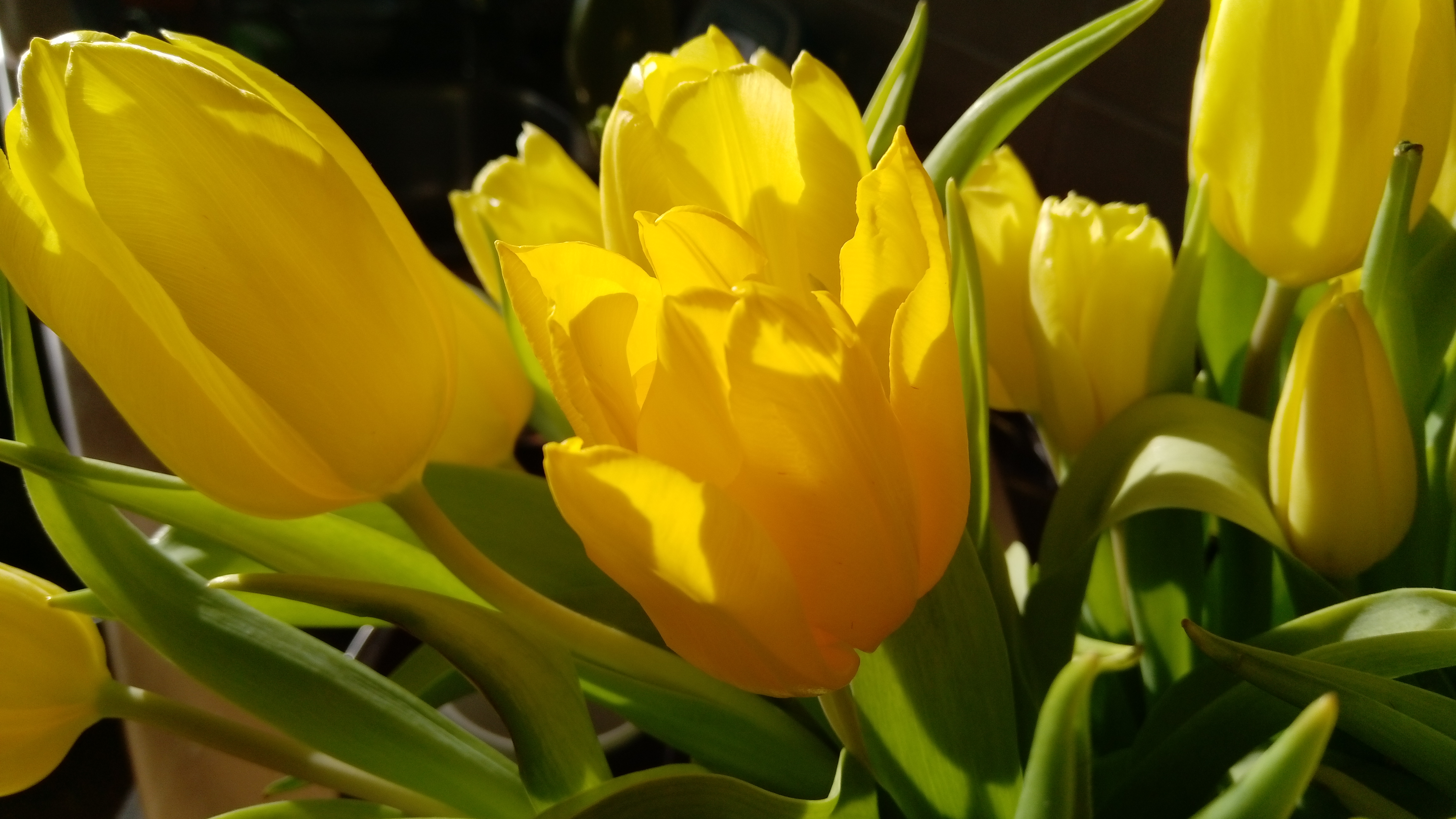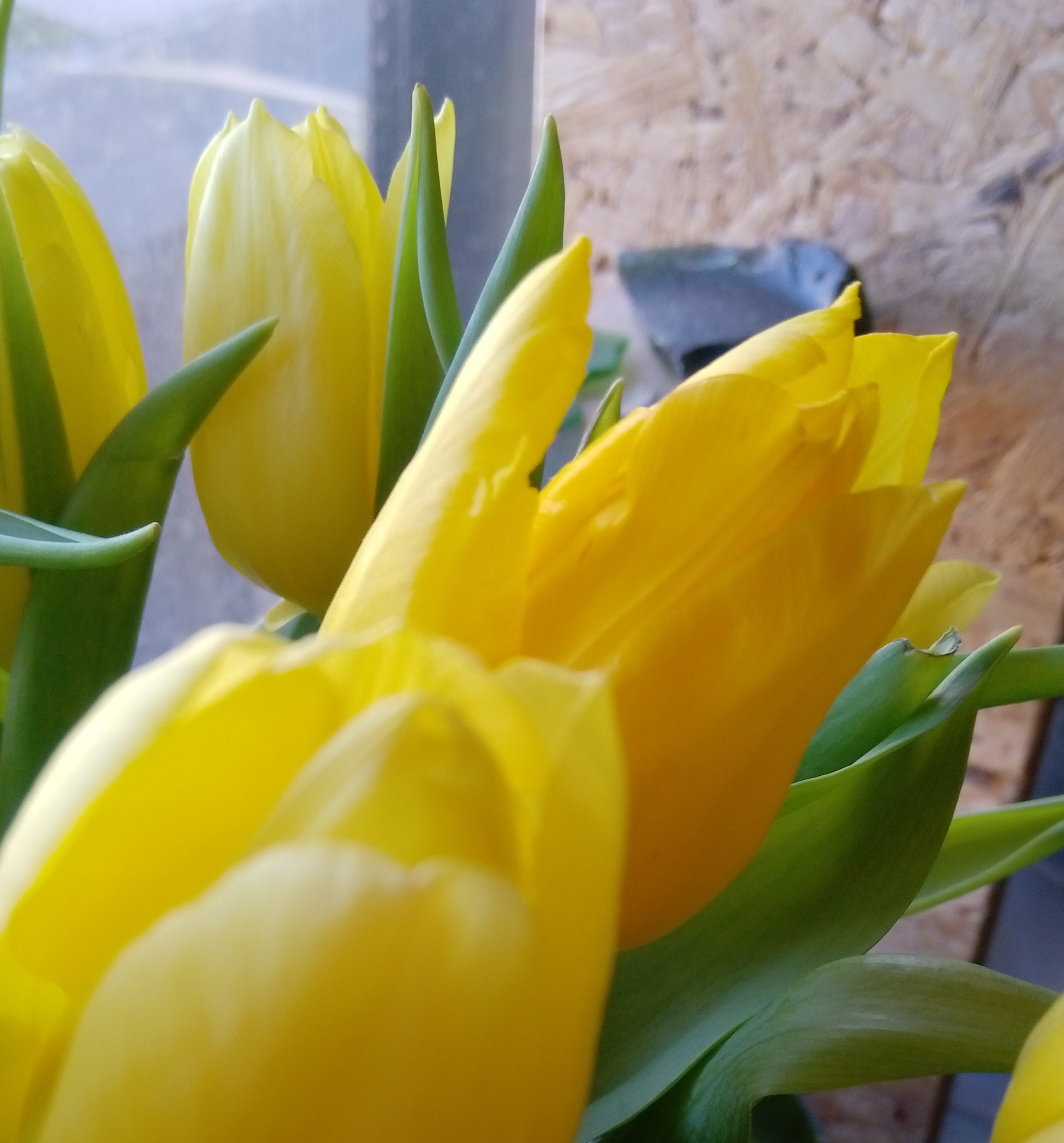 Inmitten der gelben Pracht steckt eine, die anders gelb ist als ihre Mittulpen. Das hab ich erst gestern bemerkt, als ich sie in meine große Vase steckte. Zuvor hatten sie den Kultshock verschönert.