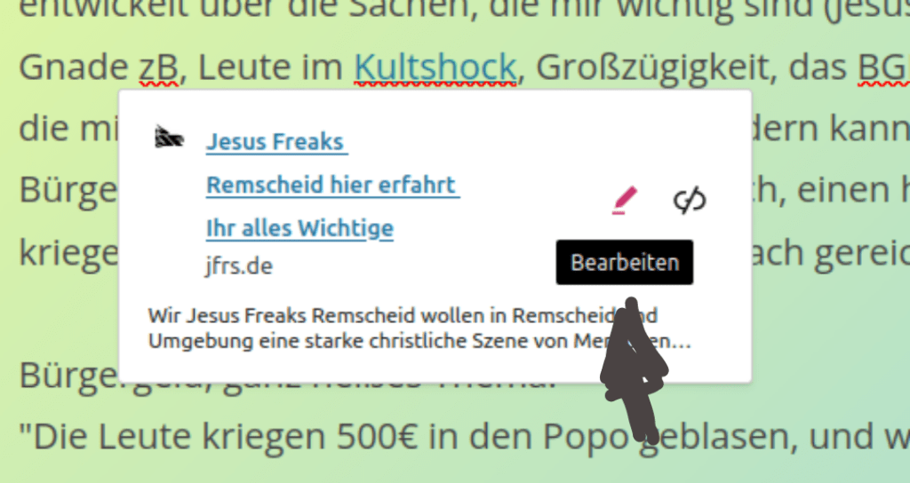 Weil meine Linkse immer auf einer neuen Seite aufgehen (bin halt vielseitig) komm ich nach der neuesten Neuerung auf sechs Schritte für einen Link.