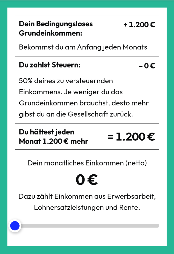 Und du, die/der du immer über „bedingungslos“ jammerst, dass es voll ungerecht sei (usw) – hör auf zu jammern. Das bedingungslose Grundeinkommen ist nicht ungerecht oder wie mit der vielzitierten Gießkanne ausgegossen, es ist anders verteilt. Besser. Und wer viel Geld verdient, behält auch mehr als wer wenig verdient, keineswegs haben wir dann alle gleich „nur noch“ monatlich 1.200€ in der Tasche! Das wäre ja totaler Quatsch und nichts, das irgendwen überzeugen würde – nicht mal mich, und ich hätte dann mehr als das Doppelte inne Täsch als das Bürgergeld mir zum Leben zugesteht.