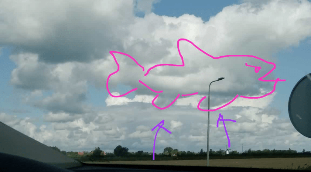 Die Flossenwolke von der Hinfahrt, schon weit unter zeeländischem Himmel:
