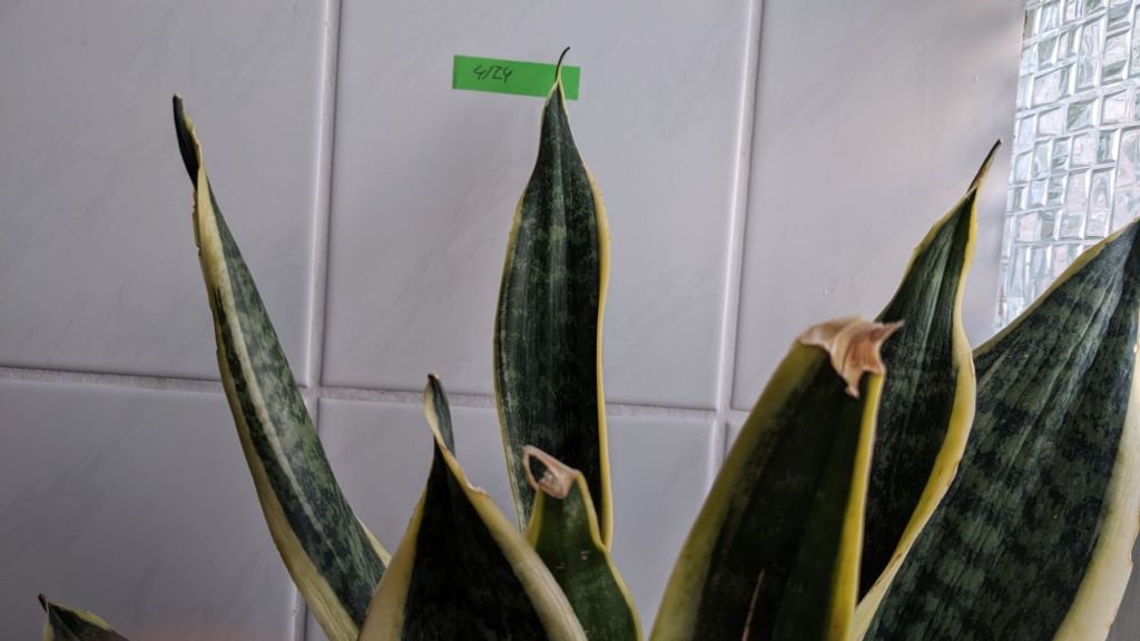 Trotzdem klebte ich im April das grüne Schildchen mit Aufschrift „4/24“ auf die Fliesen, damit ich bei Zuwachs immer auf dem Laufenden bin. Lob wird ja am besten fangfrisch serviert.