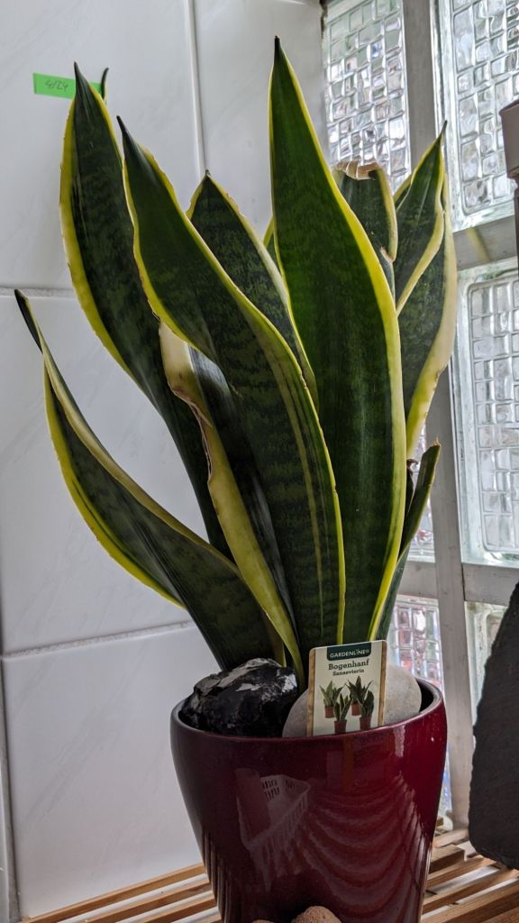 Die Sansevieria a.k.a. „Geh-mir-weg-mit-der-Gießkanne!“, die im Bad hinterm Wasserkasten steht (seit ich über den Winkel verfüge, stehen da nur besondere Pflanzen) würde sich nie so anbiedern. Wasser will sie keins und von Dünger hält sie nichts. Wer es nicht mit Mitteln der Raumluft schafft, gut auszusehen, sollte die Daseinsform wechseln.