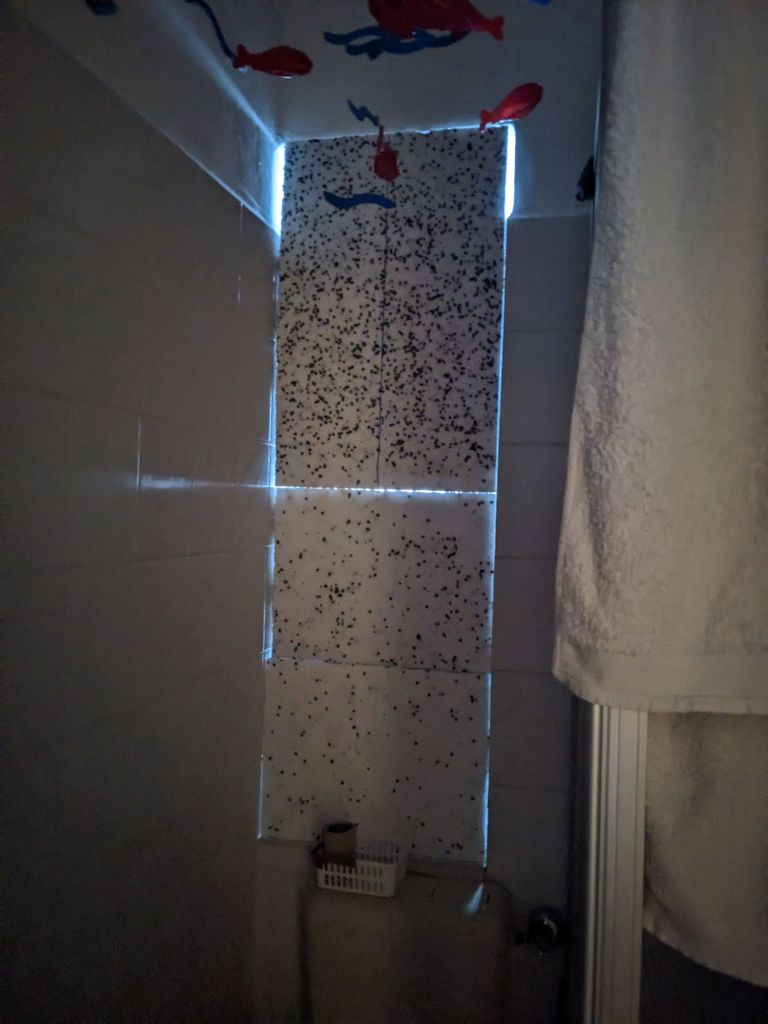 „Aber wenn du es so gründlich abgedichtet hast, geht ja vermutlich auch keine Luftfeuchtigkeit mehr raus. Und dann kannst du drinnen nach jedem Duschen ein paar mehr Seerosen züchten“, überlegt der SF, der sich öfters mal durch ebenso naturwissenschaftlich korrekte wie wenig lebenspraktische Denkansätze hervortut.
