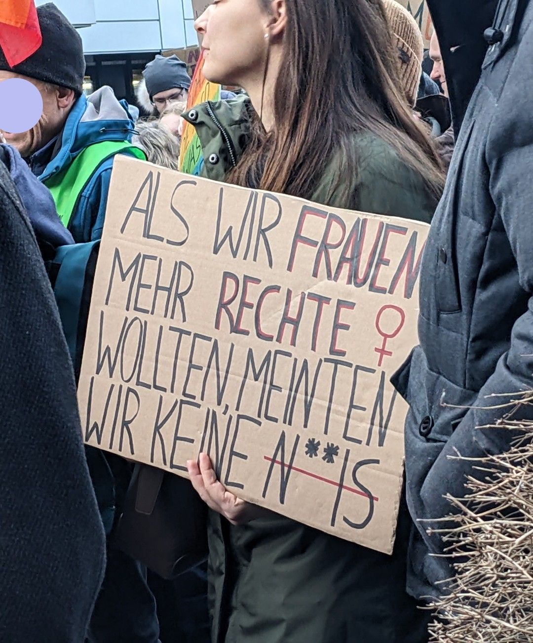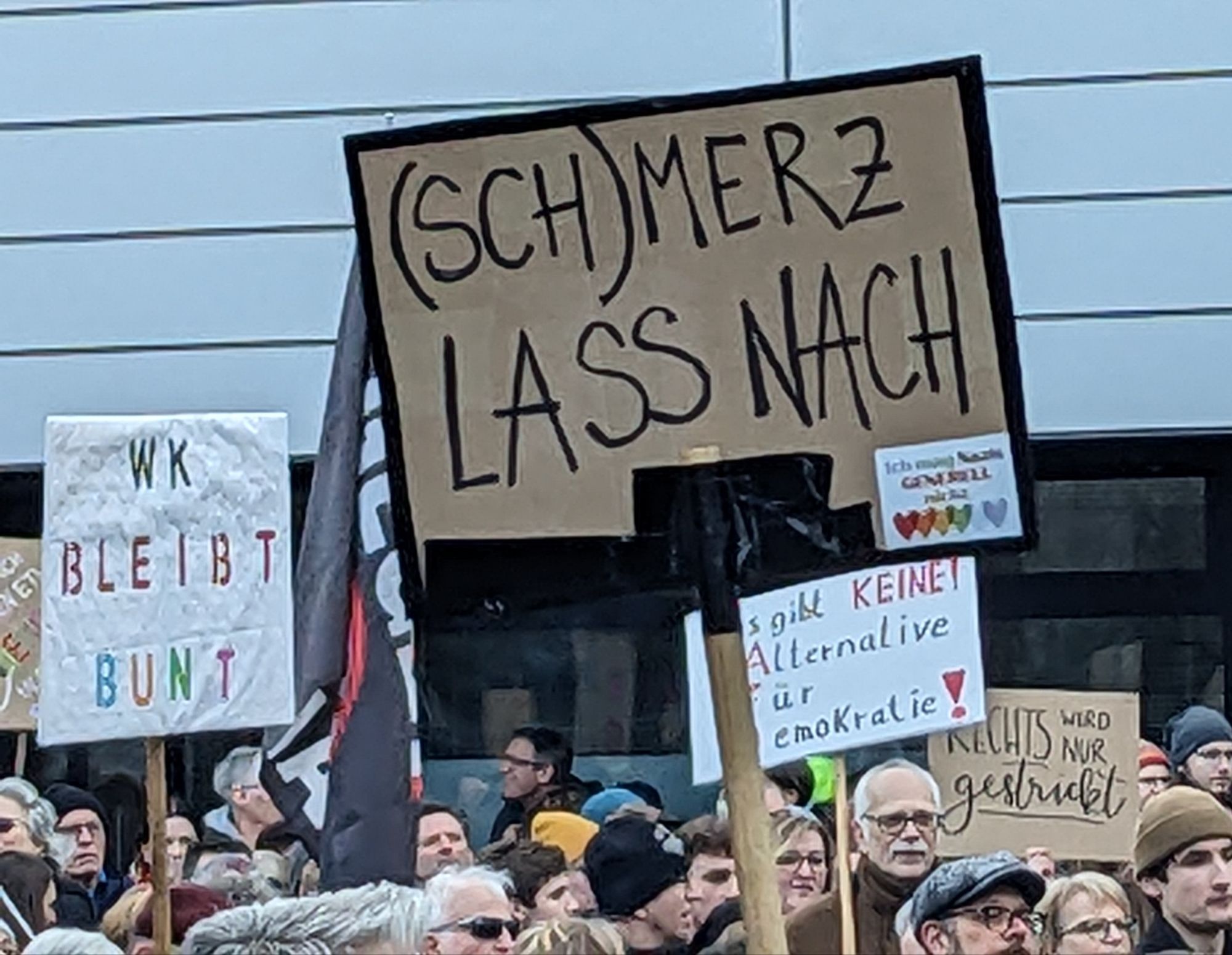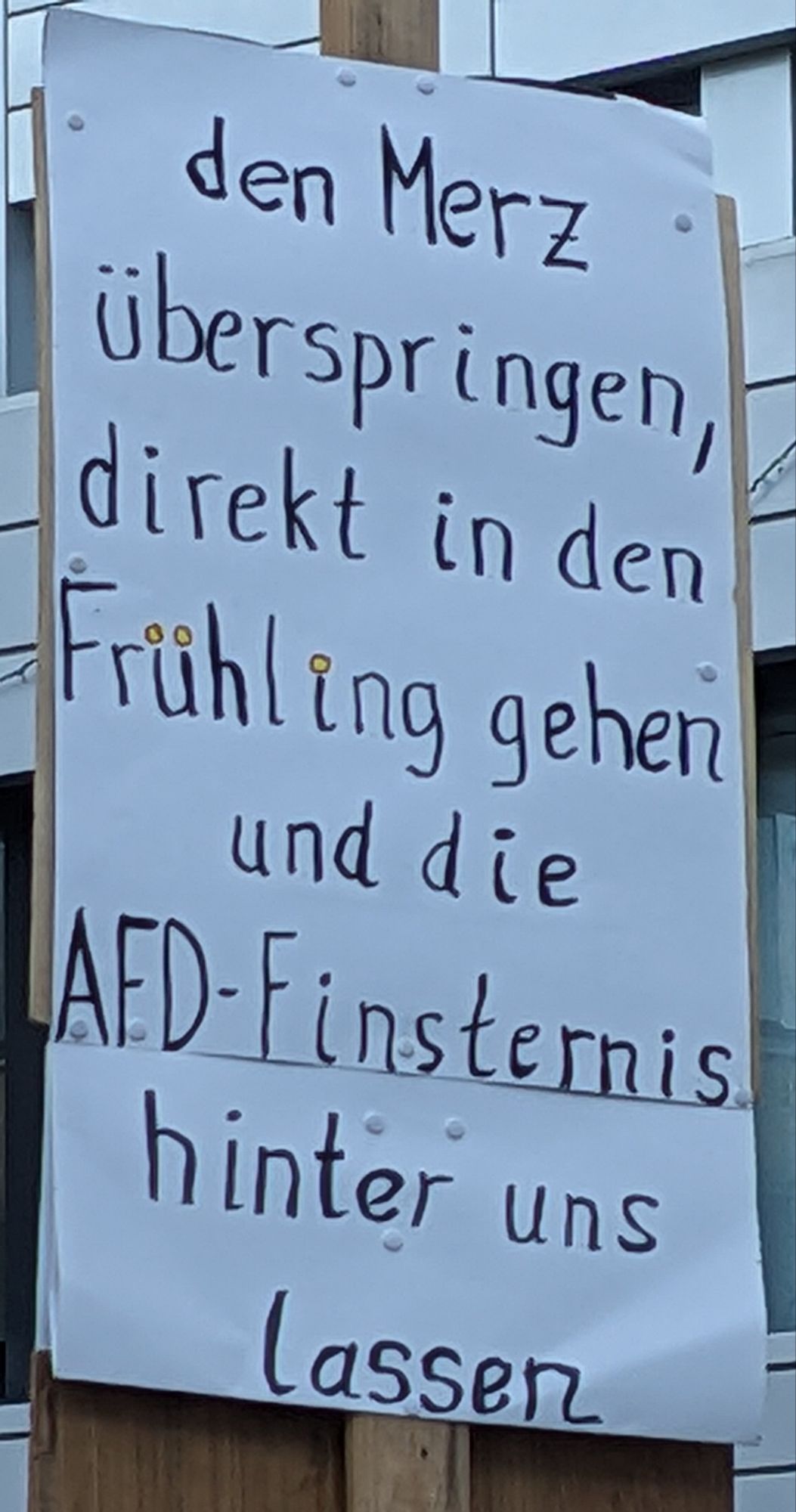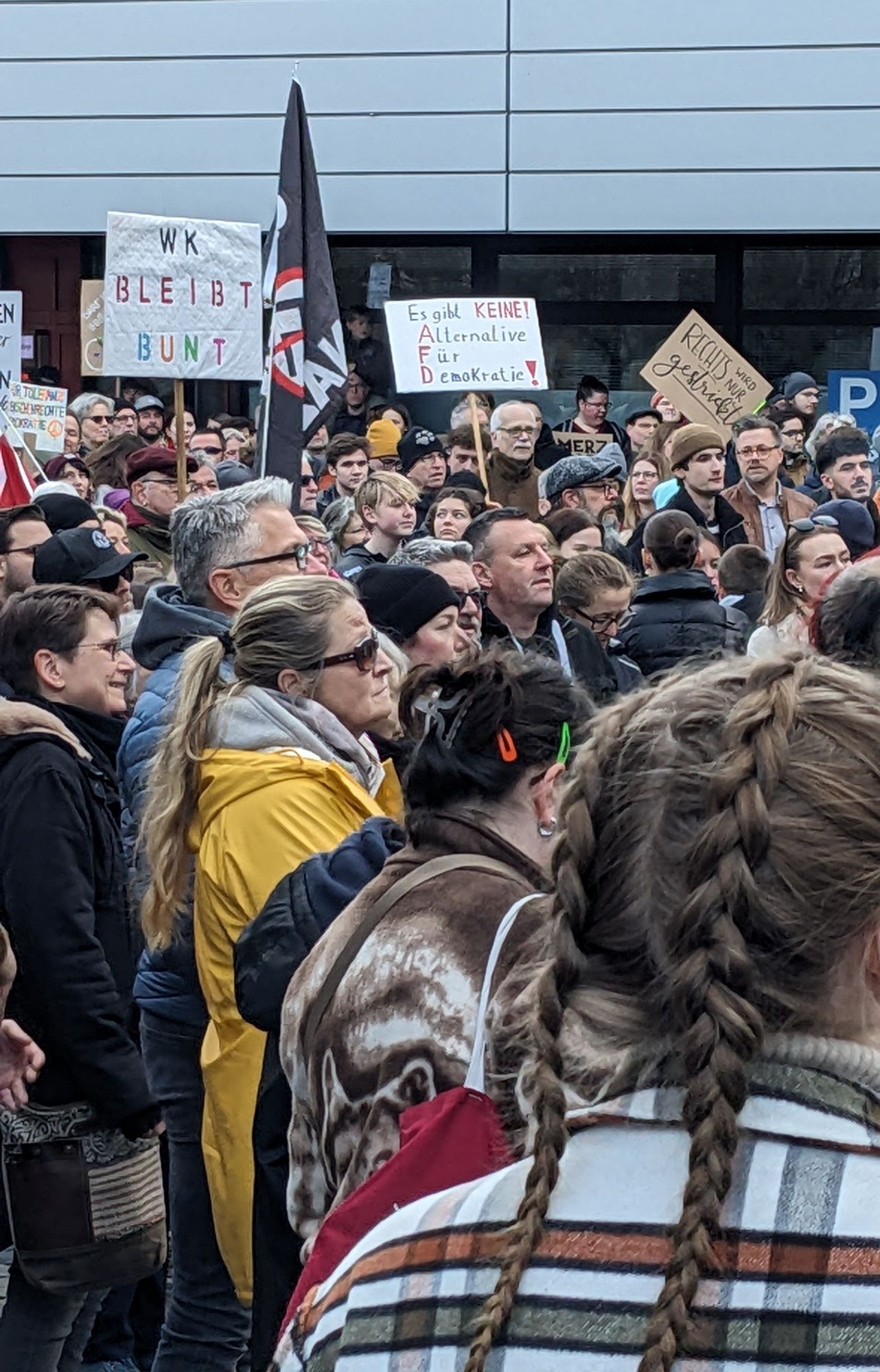 Neben all den großen Demos in den großen Städten waren Samstag natürlich auch wieder welche in Kleinstädten angesagt, und da ich mich in großen Menschenmengen oft überfordert fühle, lag es nahe, die Lenneper Stadtgrenze zu überqueren und in Wermelskirchen gegen den Rechtsruck des bösen Friedrichs* zu demonstrieren. Teile meiner Famillich waren auch da: Brüder gegen Rechts, Nichten gegen Rechts und Väter gegen Rechts. Hier habe ich dir ein paar Eindrücke zusammengestellt.