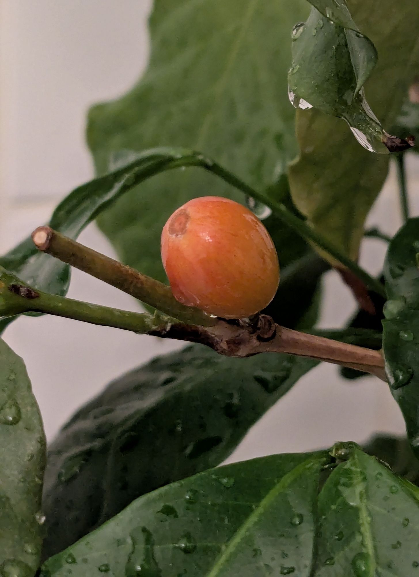 Vielleicht ändert es sich, wie sich die Farbe der Coffeakirschea ändert. (!!! Ihre Erstgeblühte ist ganz orange geworden, wärend ich mich über die 12 roten Kugeln gefreut habe, die ihr ausnehmend gut stehen.)