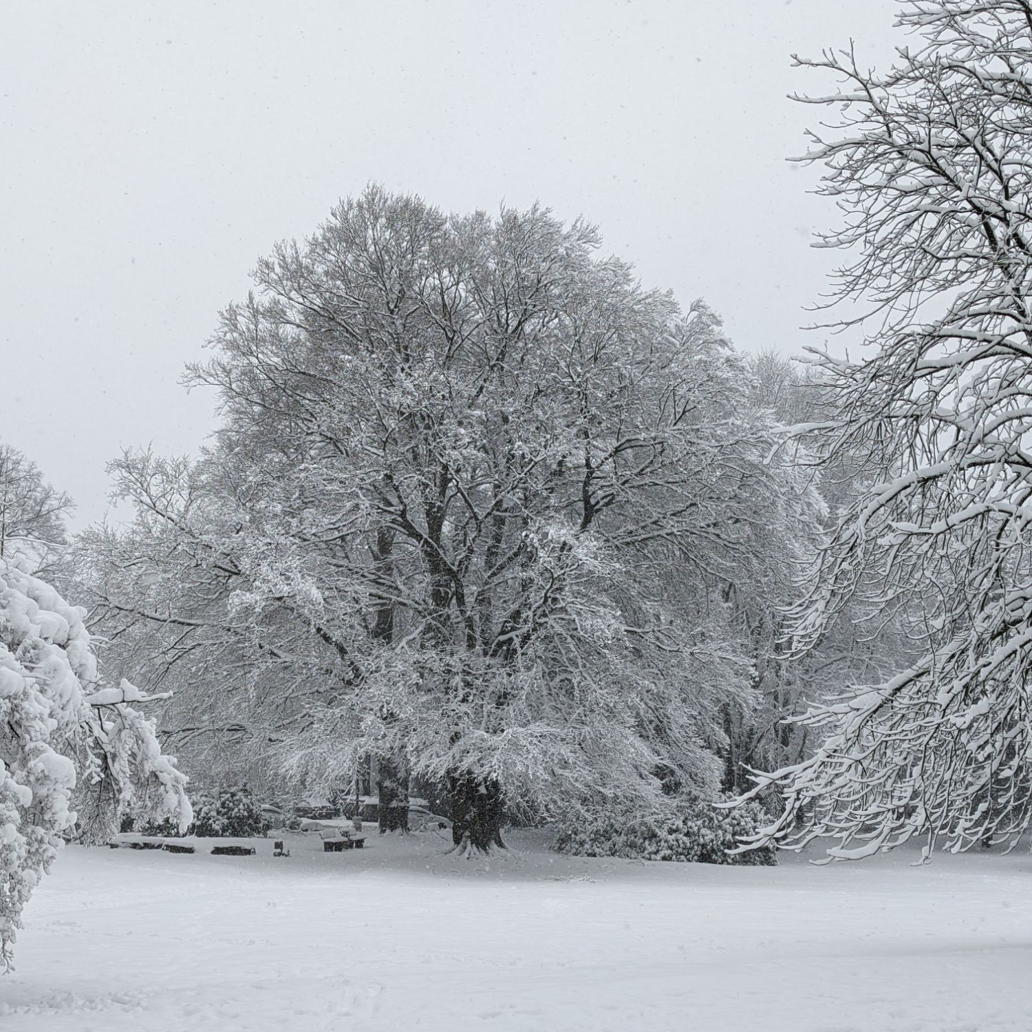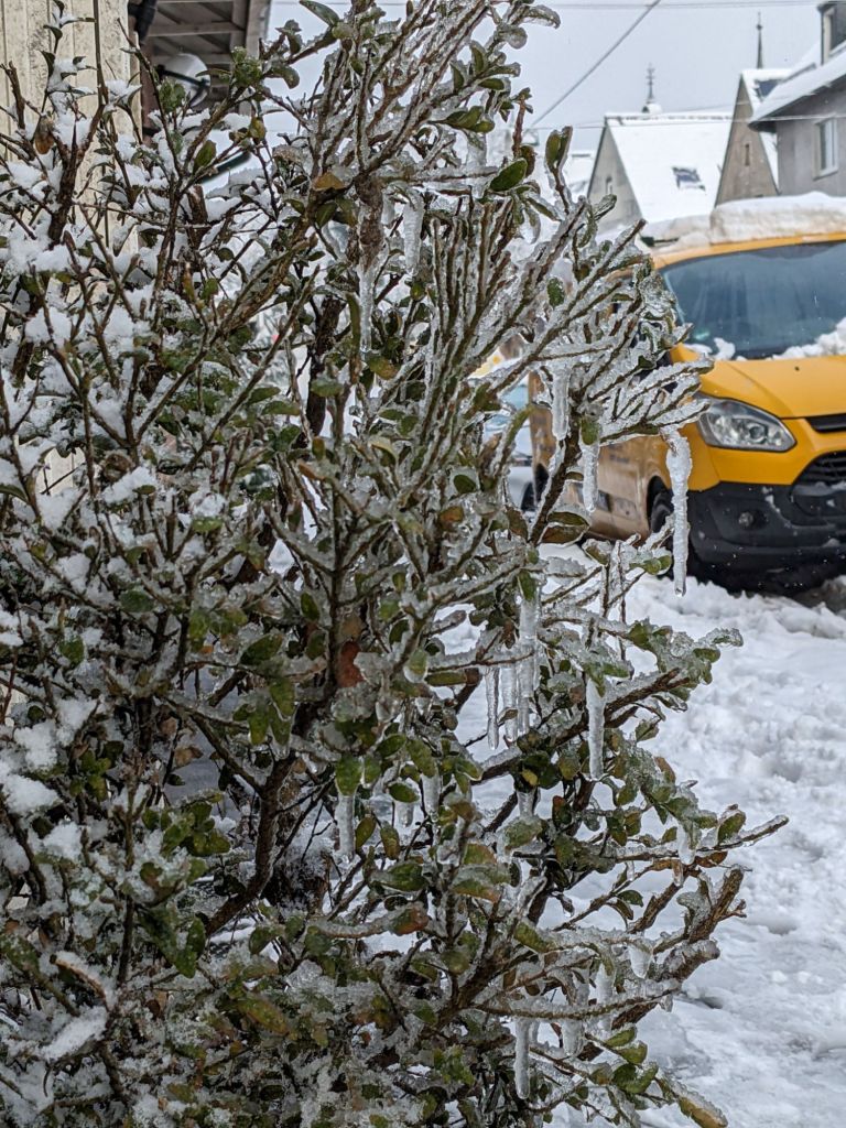 Ich gebe zu: verschneite Bäume sehen prachtvoll aus, viel schöner, als wenn bloß der normale Regen auf sie pladdert. Nach dem zweiten von drei Arbeitsgängen hatte ich u.a. ein Date mit dem Einzelhandel und habe dir von den Wegen kreuz und quer durchs Städtchen ein paar Impressionen mitgebracht: