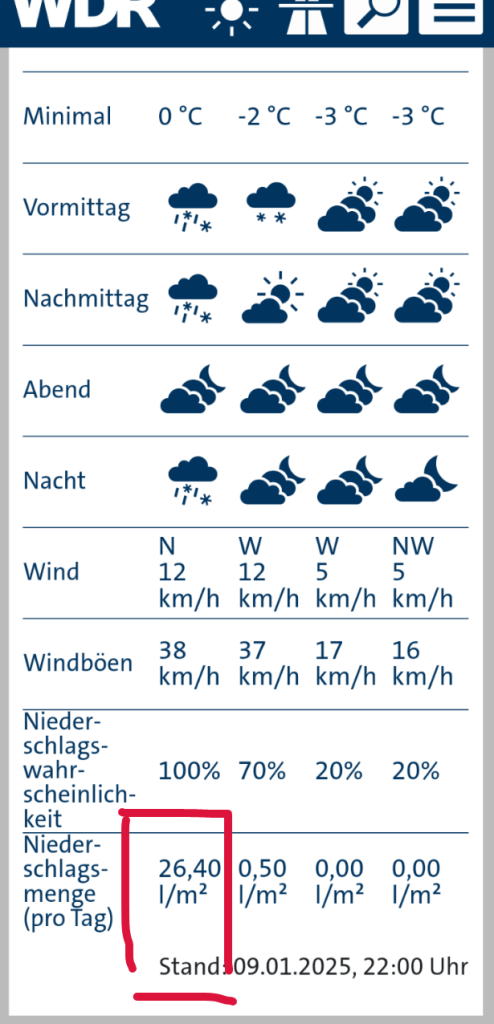 Ich weiß nicht, wie es andernorts auf Remscheids Stadtgebiet war; in Lennep gab es jedenfalls keinen Regen, sondern ausschließlich Schnee. Winterwonderland! Wie romantisch! Na-tür-lich! hatte ich ausgerechnet heute Schneedienst.