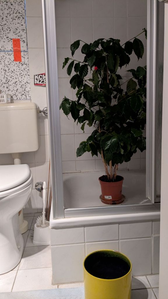 Zum Glück lässt sie mit sich reden und zieht einen Duschenregen dem Klositzen vor. Inklusive Unterblattberegnung als besonderem Service für unsere Stammkundschaft.
