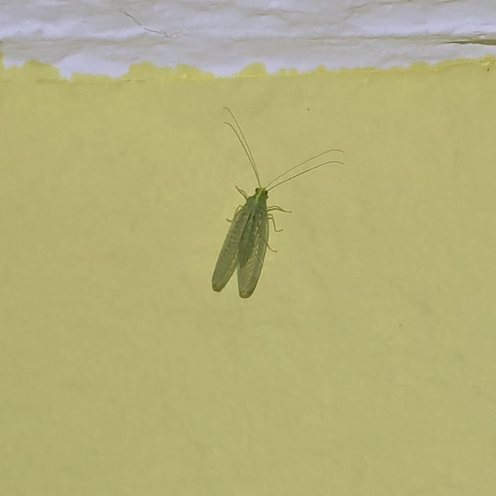 Die Florfliege ist eine, die gut argumentieren kann. Ich hatte ihr nämlich gesagt, sie solle bitteschön ihre sechs Füße von meiner gelben Küchenwand nehmen, und zwar zackzack!, die sei bekanntermaßen DIE GELBE WAND und als Hintergrund nur für Pflanzen des Tages gemacht. Ich hab nix studiert, auch keine Botanik, aber sechs Füße! Und dazu zwei Flügel!! So sieht keine Pflanze aus!