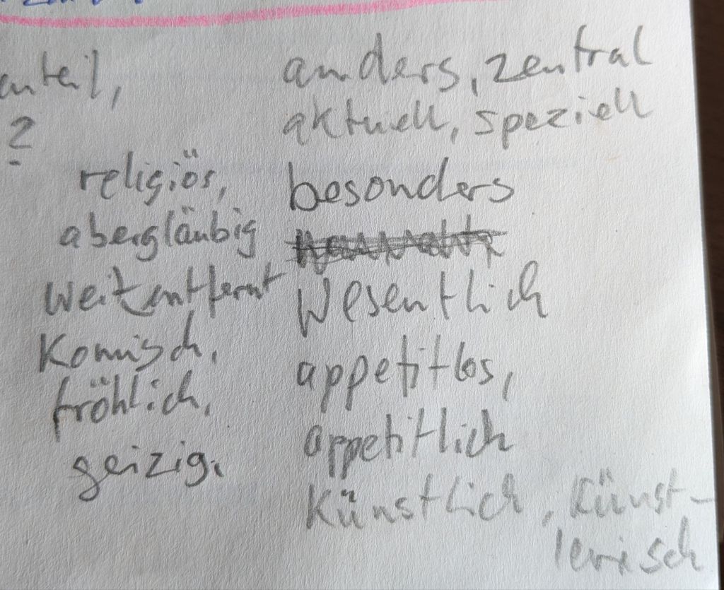 und ich habe meinen Anteil der Hausaufgabe „sammle Adjektive“ so erledigt: