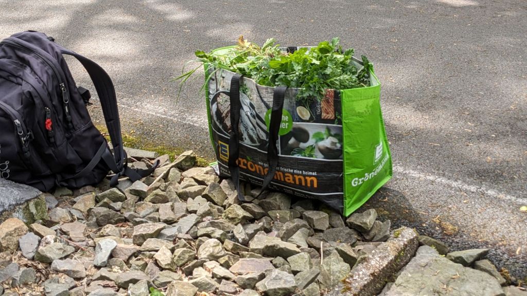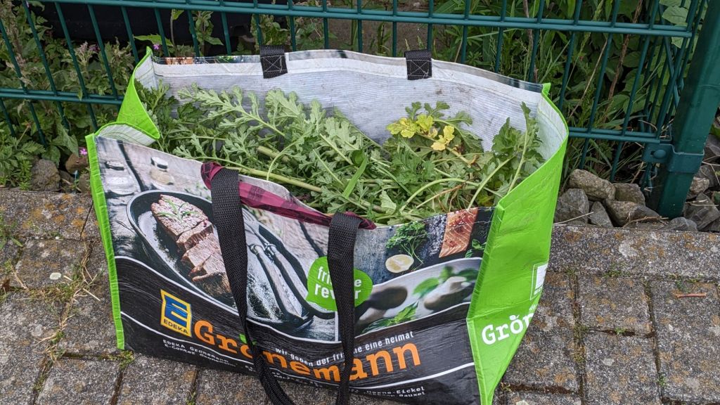 Ich wollte den obigen Beispielen noch meherere folgen lassen, aber zu all den unangenehmen Eigenschaften des wüchsigen Grünabfalls hatte ich schnell eine weitere gefunden: ohne eigene Biogasanlage oder zumindest ein Vehikel, das den Mist beiseite schaffen hilft, sitzt man recht bald auf einer Halde von Unkraut, das niemand haben will. Erst recht möchte es der Vermieter nicht wieder in den hauseigenen Mülltonnen finden!